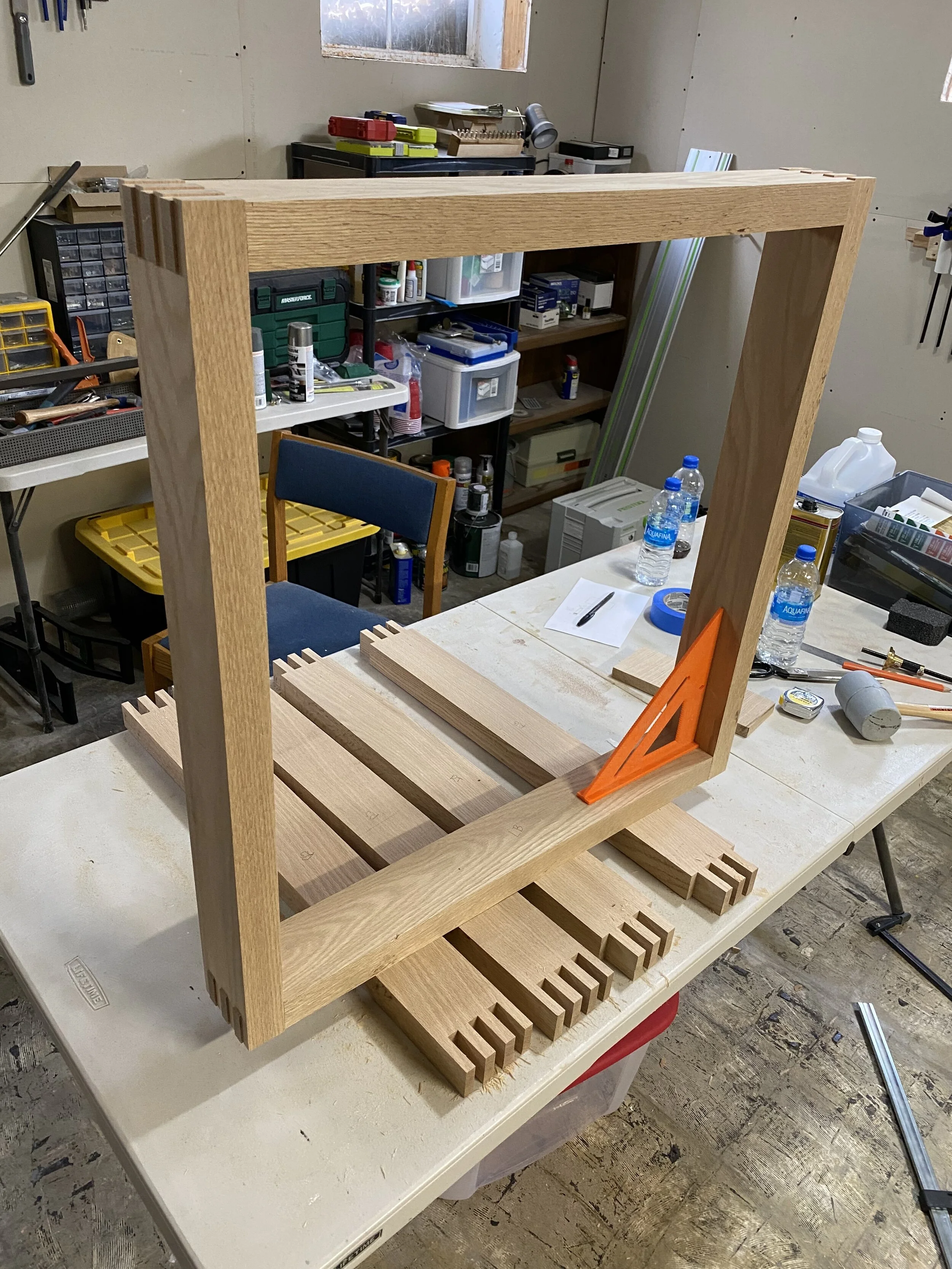 In process of cutting box joints for leg assembly. A lot of milling waste!